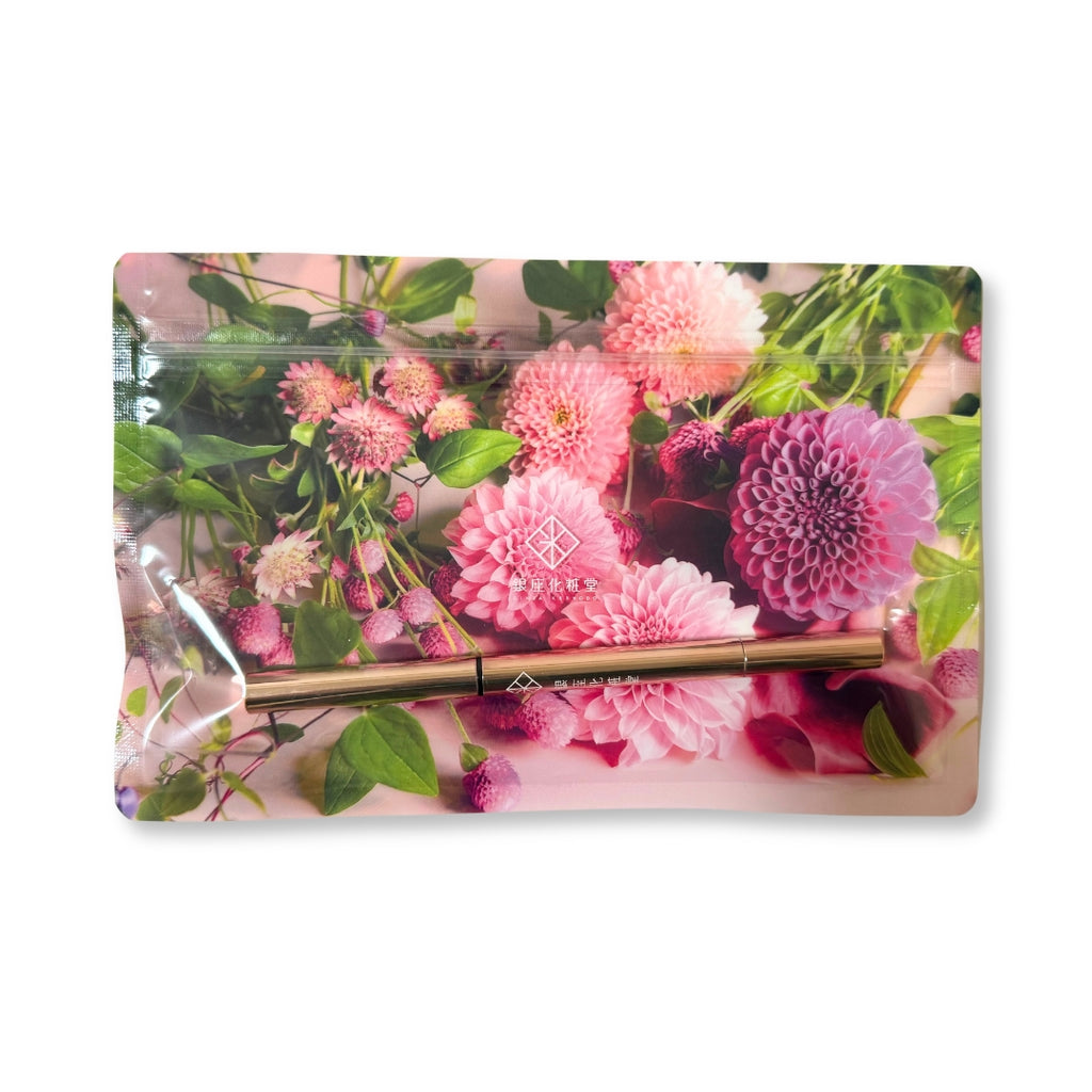 01-02:トリメチルシロキシケイ酸、メチルトリメチコン、ポリエチレン、脂肪酸(C18-36)グリコール、キャンデリラロウ炭化水素、ダイヤモンド末、アメジスト末、トルマリン、ネフライト末、サンゴ末、パール、ルビー末、コハク、トコフェロール、ペンタイソステアリン酸ジペンタエリスリチル、(アクリレーツ/アクリル酸ステアリル/メタクリル酸ジメチコン)コポリマー、[+/-]トリエトキシカプリリルシラン、ジメチコン、マイカ、合成フルオロフロゴパイト、酸化チタン、酸化鉄、赤202、グンジョウ、カーボンブラック