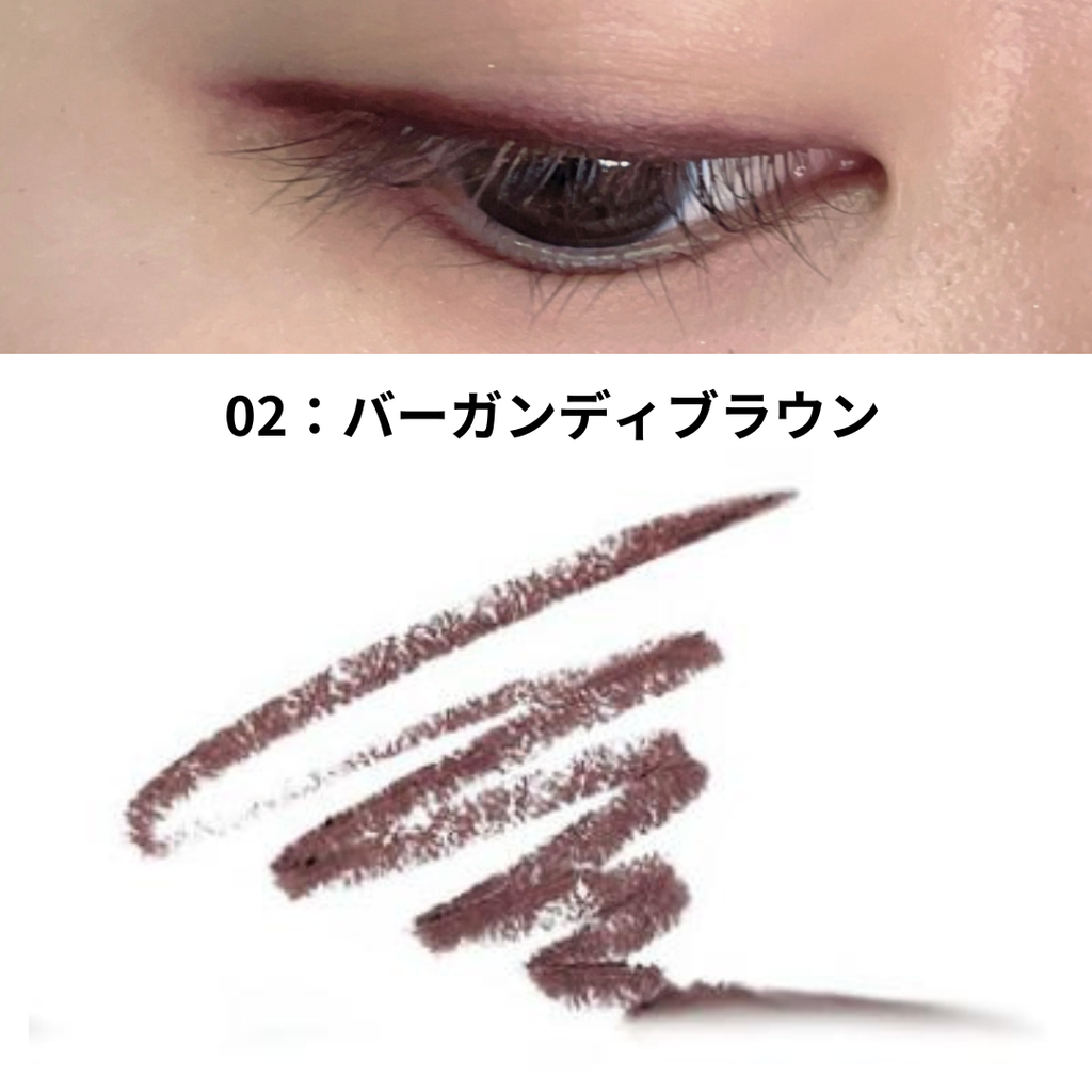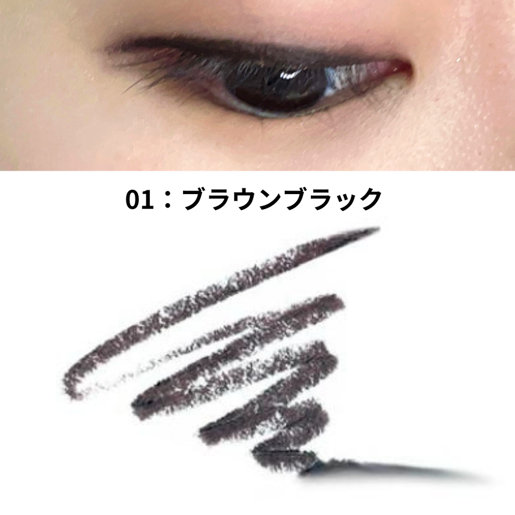 ツヤのあるくっきりラインもぼかしてソフトなラインもメイクに合わせて楽しめます。なめらかジェルがまぶたにぴたっと密着して定着するからヨレやにじみのない描きたての美しさが長時間持続。汗・水・皮脂・こすれに強いマルチプルーフタイプ。